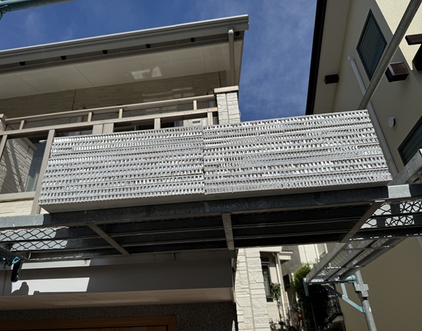 既存のバルコニーのアルミ枠を利用し、ストーンバリア工法で施工しました。